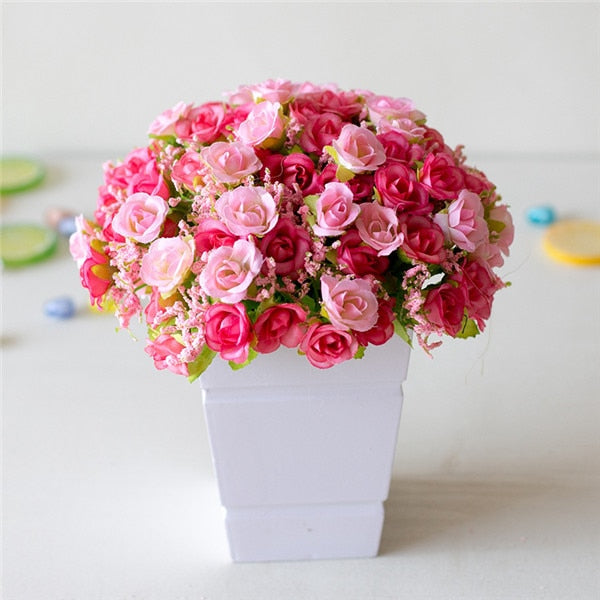 21 Head Artificial Plastic Rose Flower Bridal Bouquet Wedding Decoration Fake 7 Fork Mini Rose Silk Flower Romantic Home Decor