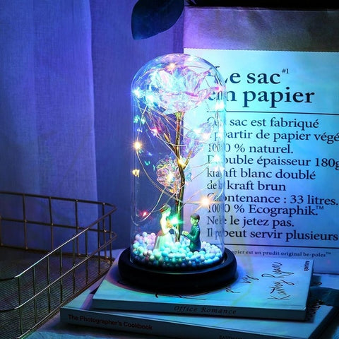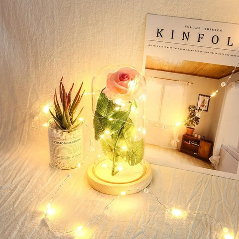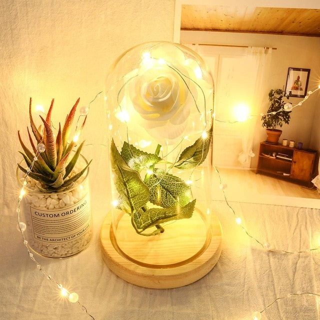 Eternal Flower Glass Cover Beauty And Beast Eternal Flower Rose In Flask Wedding Decor Artificial Flowers Valentine's Day Gifts