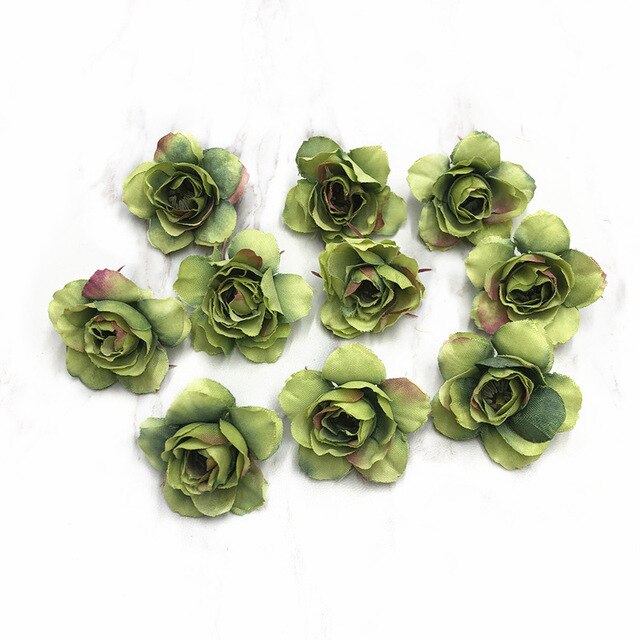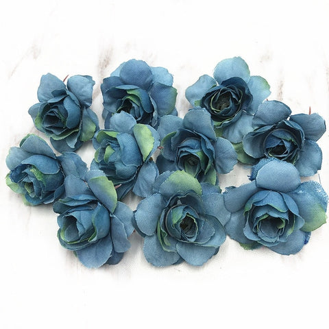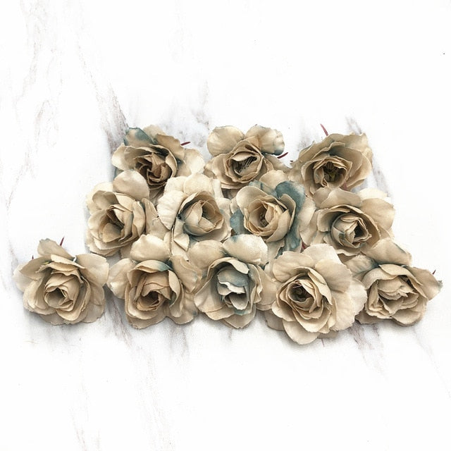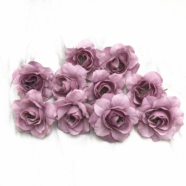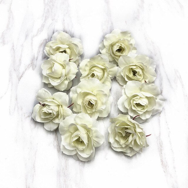 YOOROMER 10pcs small roses handmade artificial flower head wedding party home decoration DIY wreath gift box scrapbook crafts